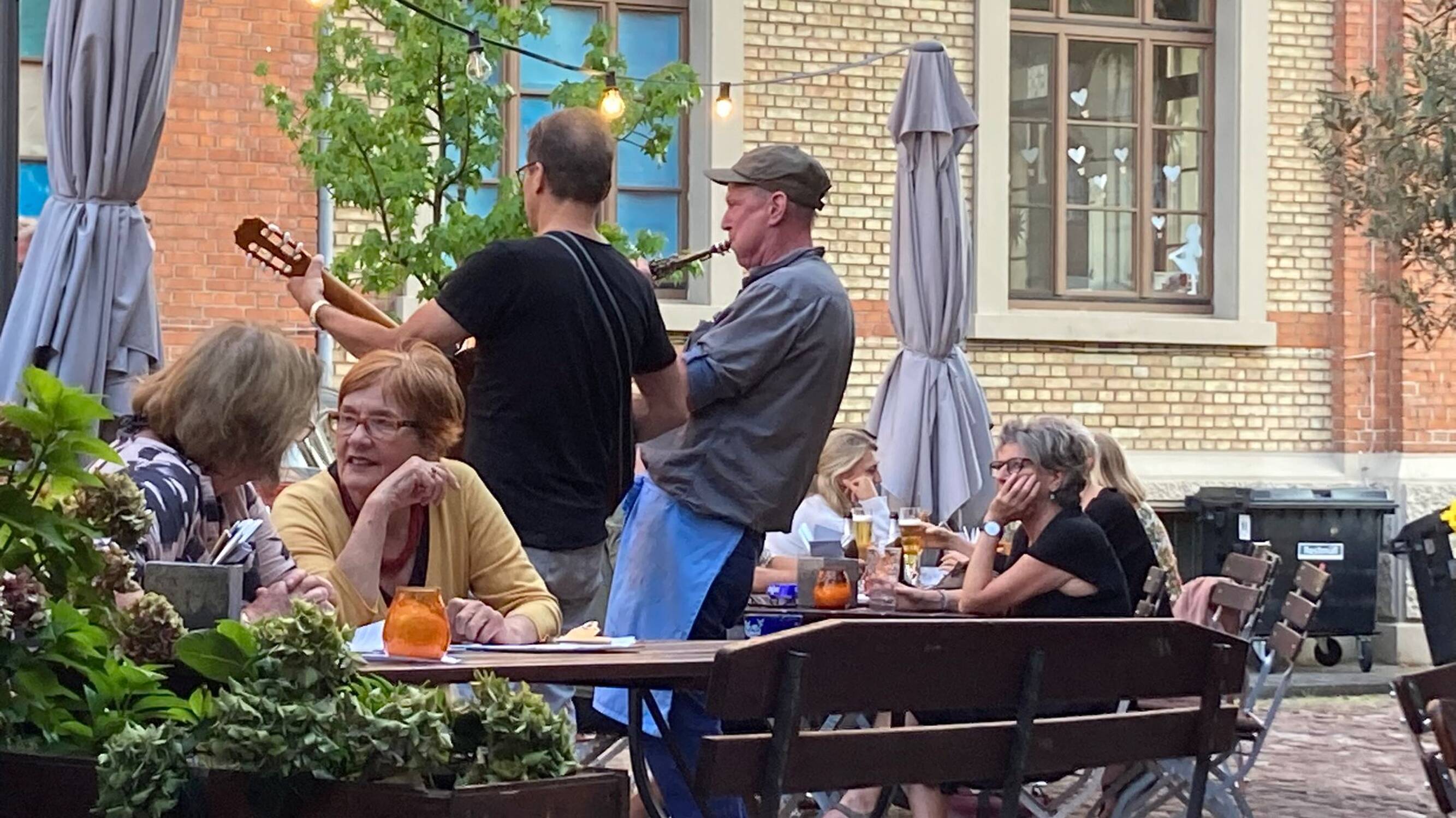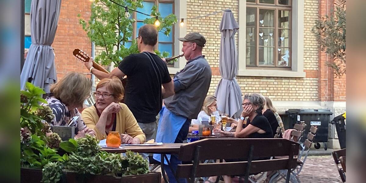 Es sind der Engländer Ian Fullwood (The Wright Thing - Heidelberg) und David Heintz (u.a. Moi et les Autres) die mit ihrer Spielfreude und einer Portion britischen Humor für gute Laune sorgen. Da singen die Gäste schon mal mit…Es geht aber auch ruhiger zu beim Dinner zum Beispiel. Es werden Eigene Stücke aber auch Klassiker wie Quando Quando, Marina, Sunny, Mac the Knie etc. geboten… das Repertoire richtet sich meist nach den Wünschen der Gäste.